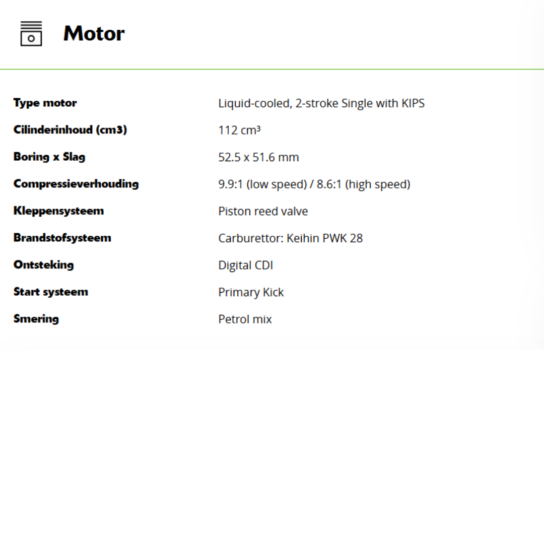 De KX112 is de perfecte tussenstap op weg naar de top. Met zijn 112cc tweetaktmotor beschikt deze supermini over genoeg vermogen terwijl de lichte handling en het geoptimaliseerde chassis helpen bij opdoen van nieuwe vaardigheden en vertrouwen. Bereid jouw toekomstige kampioen voor op de grotere KX-modellen met deze winnende combinatie.