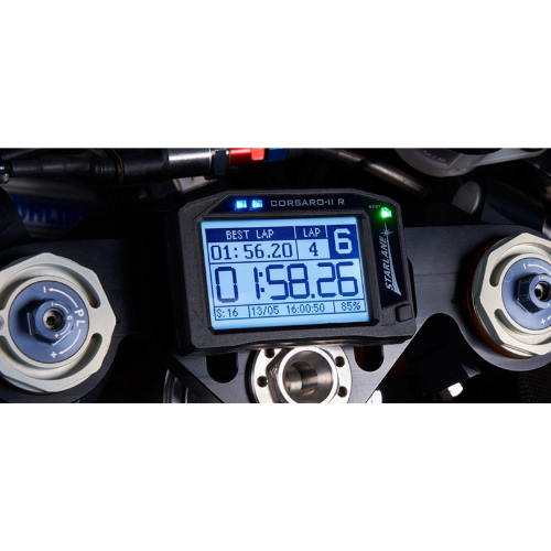 Het dashboard is een zeer betrouwbare multifunctionele laptimer. Het meet uiterst nauwkeurig bijvoorbeeld rondetijden die u met uw motor hebt afgelegd. In combinatie met de WID XS module krijgt u de volledige functionaliteit van het Dashboard en geeft de Corsaro, de snelheid van uw motor in km/h of mph en rpm (rotaties per minuut).