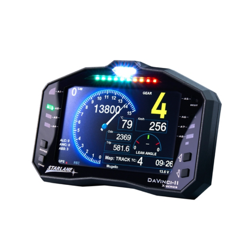 De Starlane DAVINCI-II is het meest compacte en slanke dashboard op de markt onder de nieuwste generatie apparaten met een 5 "TFT-display. Dit maakt het eenvoudig te installeren en te plaatsen op alle motoren, die nu steeds smallere en kleinere kuipen krijgen.