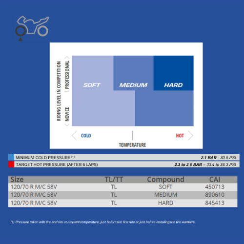 The tyre delivers consistent performance, lap after lap. It provides the necessary grip from the first lap. The materials used ensure that the rubber warms up quickly. It benefits from the latest technologies developed in MotoGP. Designed to easily adapt to novice and experienced riders and to any type of motorcycle.