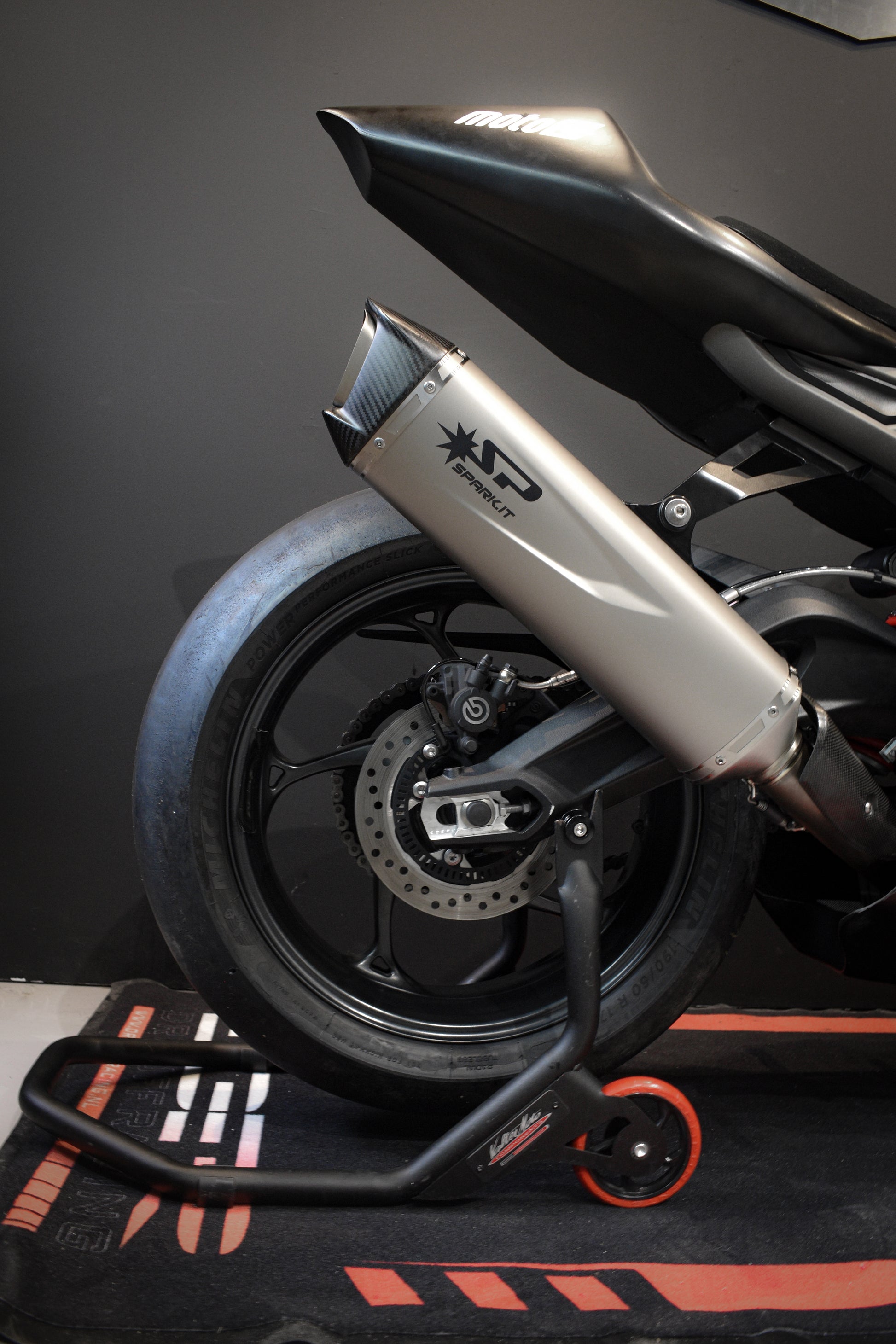 De basis: een Street Triple 765 R. Omgebouwd voor circuit gebruik naar een Moto2 Triumph. De Street Triple 765 Moto 2 word als basis pakket aangeboden, maar deze zijn uiteraard aan te passen en uit te breiden naar uw wensen. De motor wordt zonder kentekenregistratie, rijklaar, ingereden en wel afgeleverd.