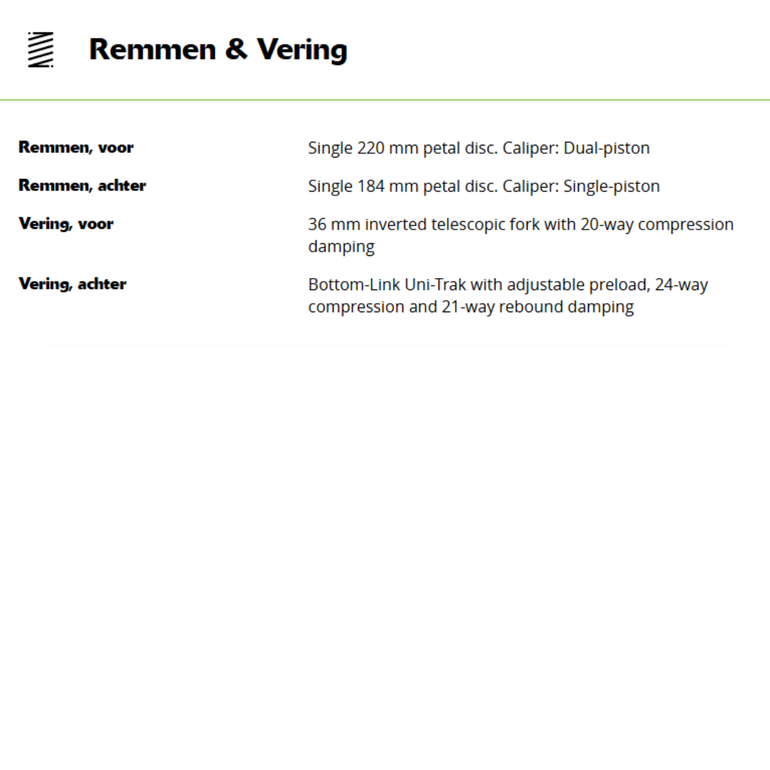Van de eerste meters tot de hoogste trede van het podium, de Kawasaki KX85 modellen bieden de perfecte opstap voor ieder jong talent. Gemaakt voor de optimale ontwikkeling van vaardigheden in de jonge jaren van elk toekomstig kampioen. De KX85 I heeft een 17'' voorwiel en 14'' achterwiel.